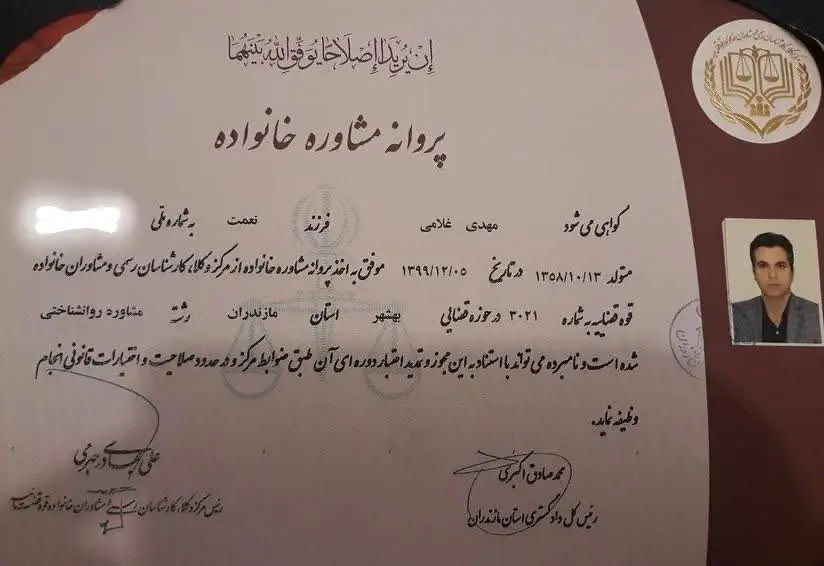 • دارای پروانه مشاوره خانواده از مرکز وکلا کارشناسان