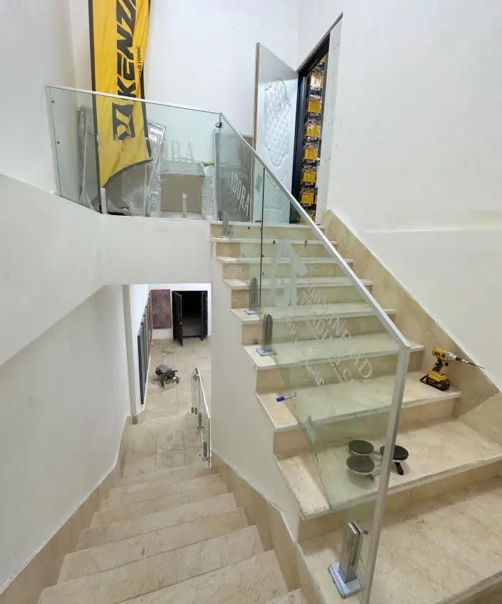 - نرده استیل شیشهای: این نوع نردهها اغلب در پروژههای لوکس و مدرن استفاده میشوند و ترکیبی از استیل و شیشههای تمیز و شفاف را شامل میشوند.