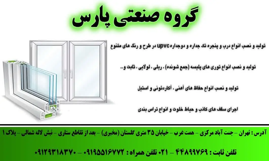 - تولید و نصب انواع درب و پنجره دوجداره upvc در طرح و رنگ های متنوع