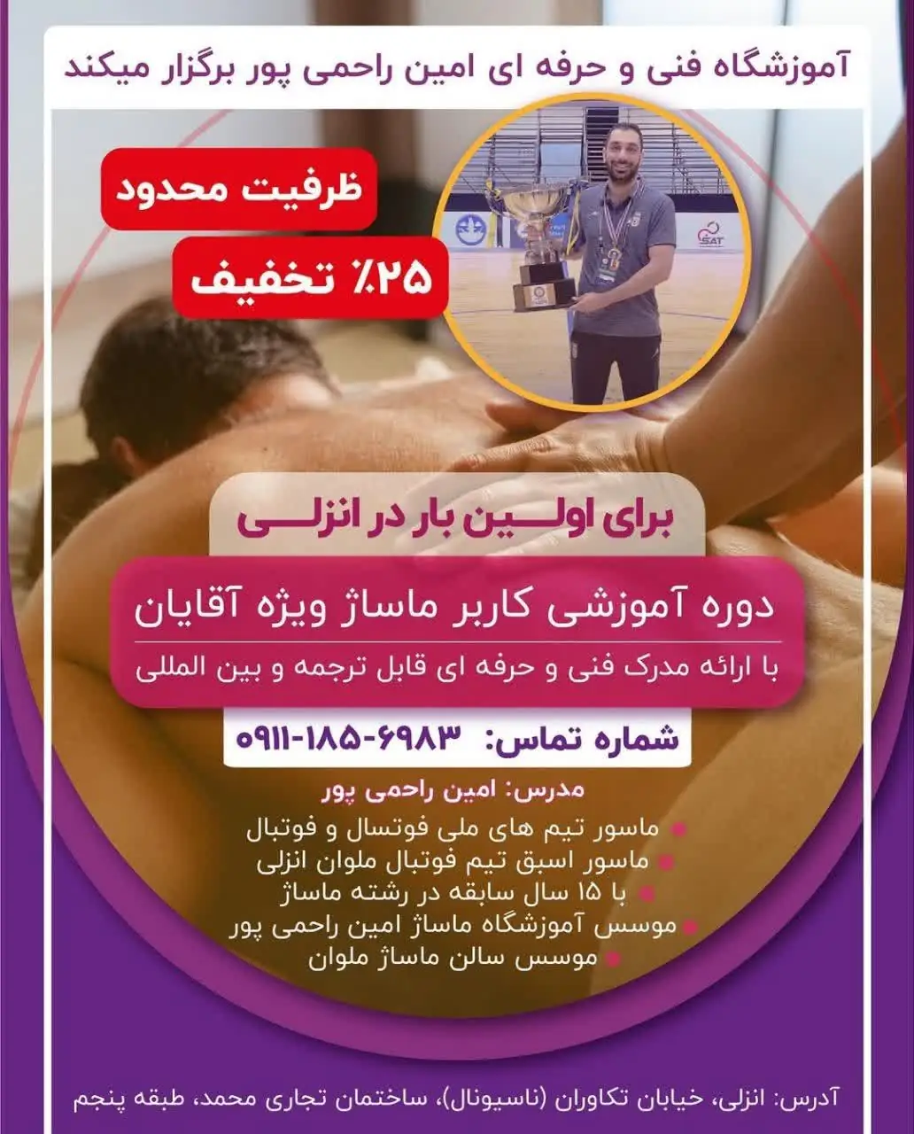 معرفی آموزشگاه و سالن اسپا و ماساژ امین راحمی پور در بندر انزلی