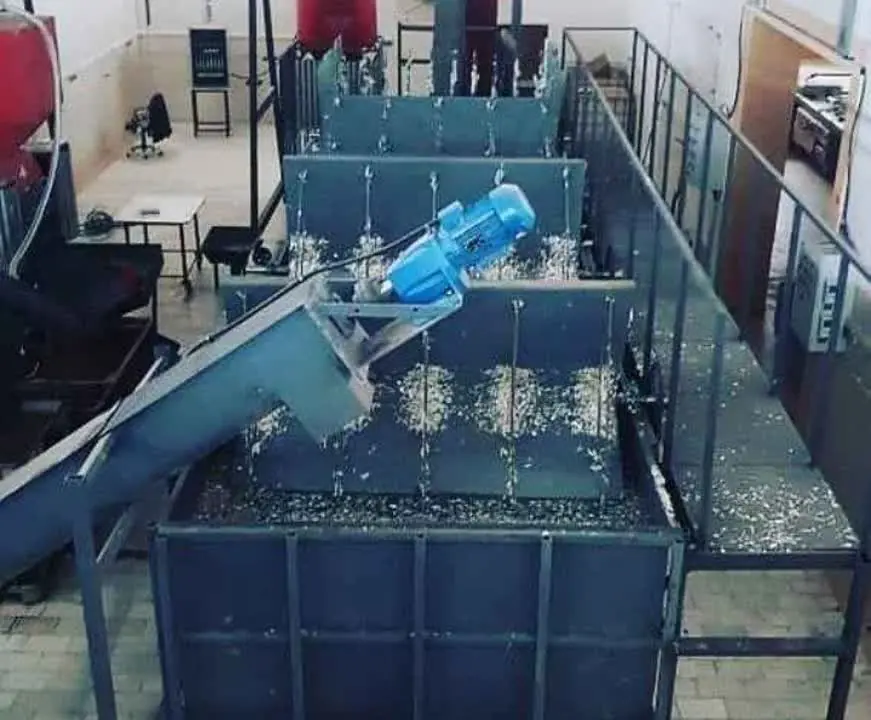 • شست‌ و شو و خرد کردن : مواد اولیه پس از تفکیک، شسته شده و به ریزدانه‌های یکنواخت (فلیک) تبدیل می‌شوند.