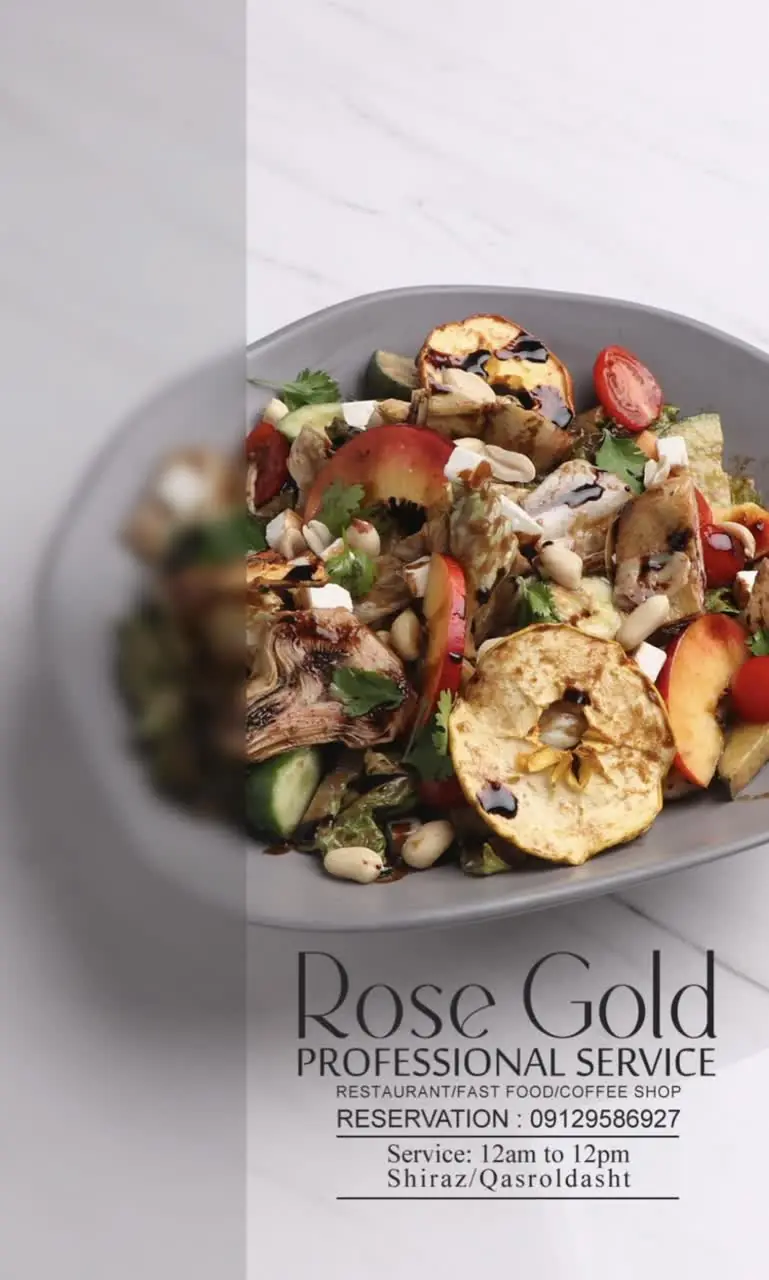 منوی رستوران رزگلد، گواه توجه به تنوع و کیفیت است. آشپزخانهی این مکان تحت نظارت سرآشپزهای مجرب، گونههای مختلف غذای ایرانی و بینالمللی را با دقت و نوآوری تهیه میکند.
