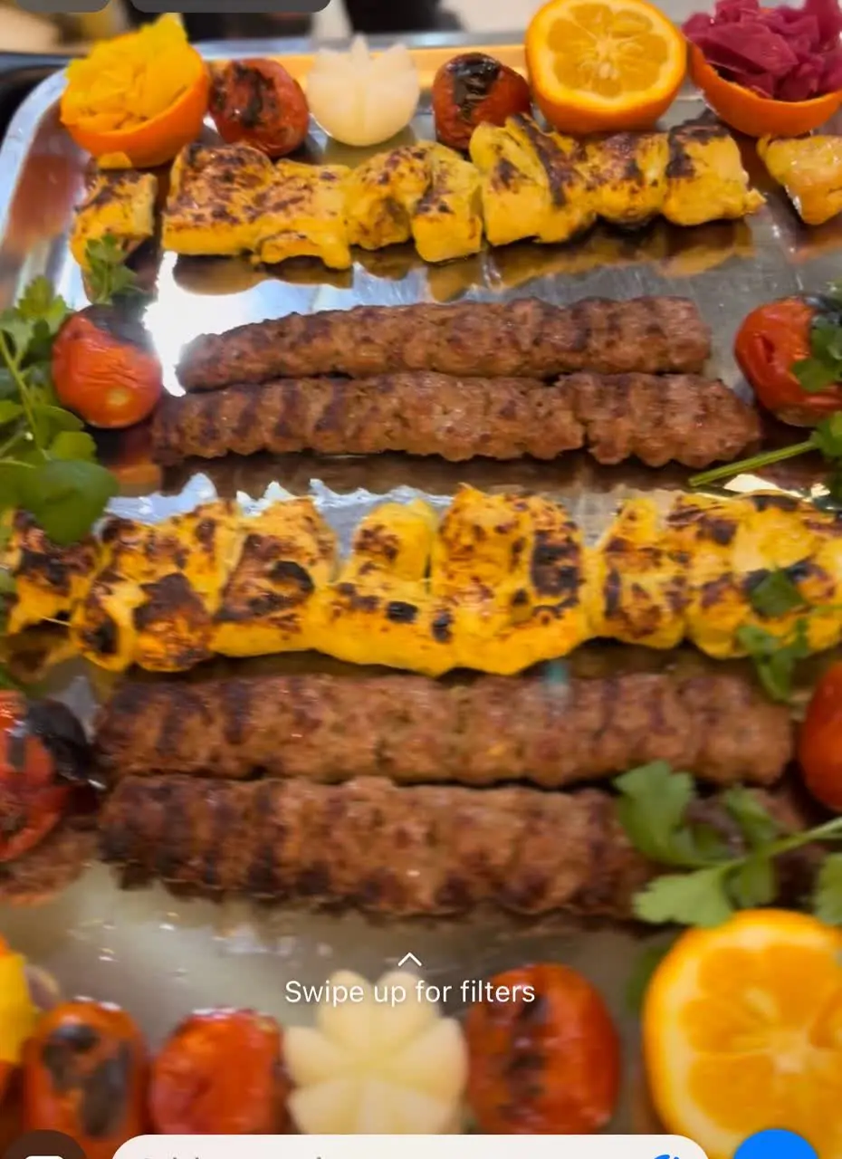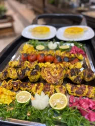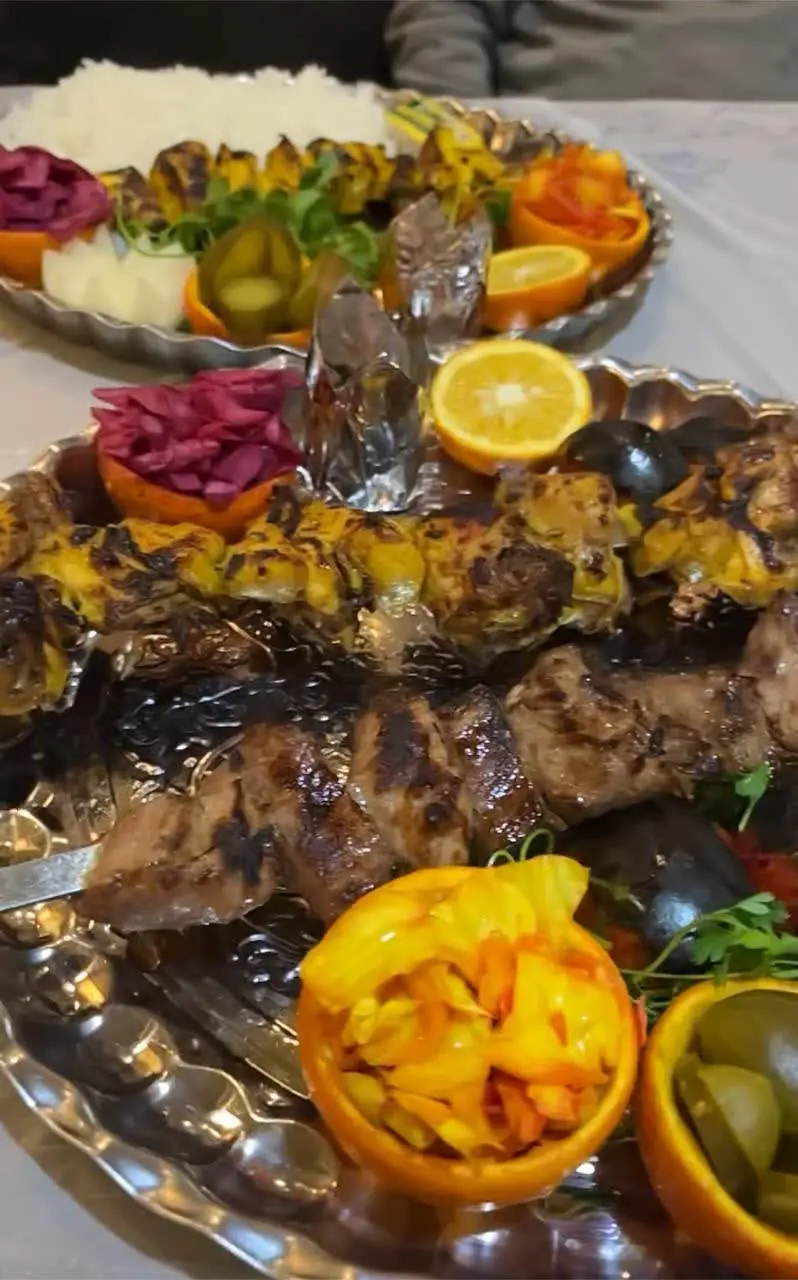 • ناهار: کوبیده گوسفندی ، اکبر جوجه ، جوجه کباب ، شیشلیگ ، ماهی قزل آلا کبابی و سرخ شده ، چلو کباب وزیری , کته کباب، ماهیچه گوسفندی