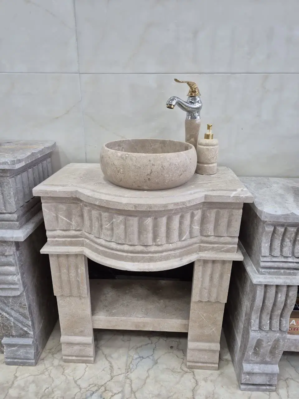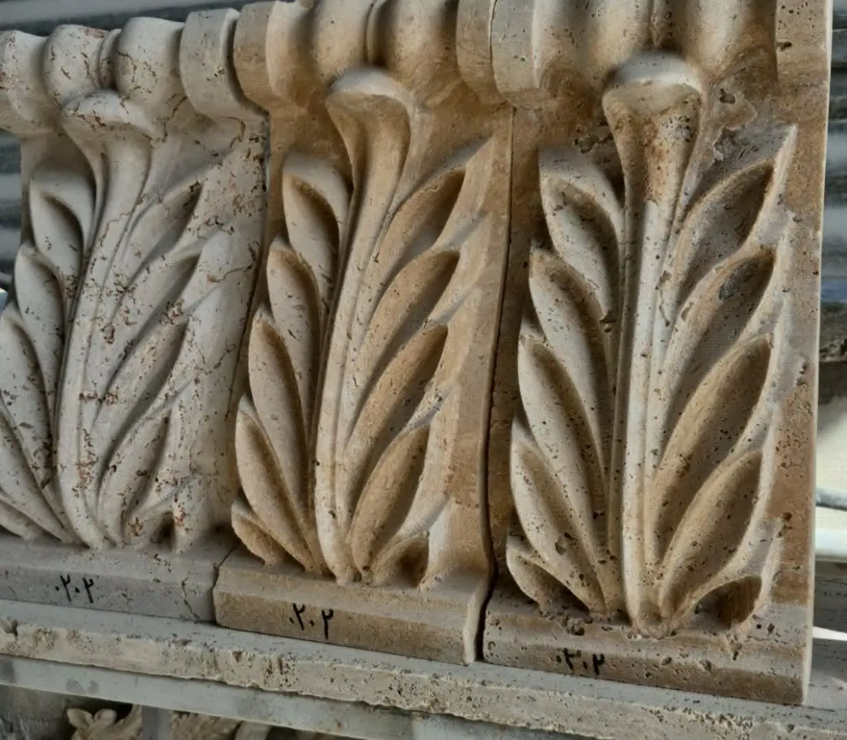 • اجرای نمای رومی و کلاسیک ، انواع گلبرگ و براکت ، سر ستون و پا ستون های گرد و تخت ، صراحی (نرده سنگی)، روشویی و غیره .
