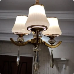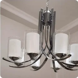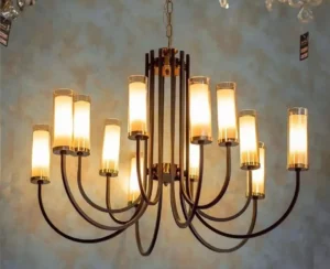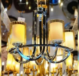 - لوستر فلزی : این دسته از لوسترها با بدنههای فلزی (مس، برنج، آلومینیوم و فولاد ضدزنگ) ساخته میشوند و بهدلیل استحکام بالا و ظاهر مدرن، محبوبیت زیادی دارند. طرحهای هندسی و خطوط تمیز، ویژگی بارز لوستر فلزی مهدوی است.