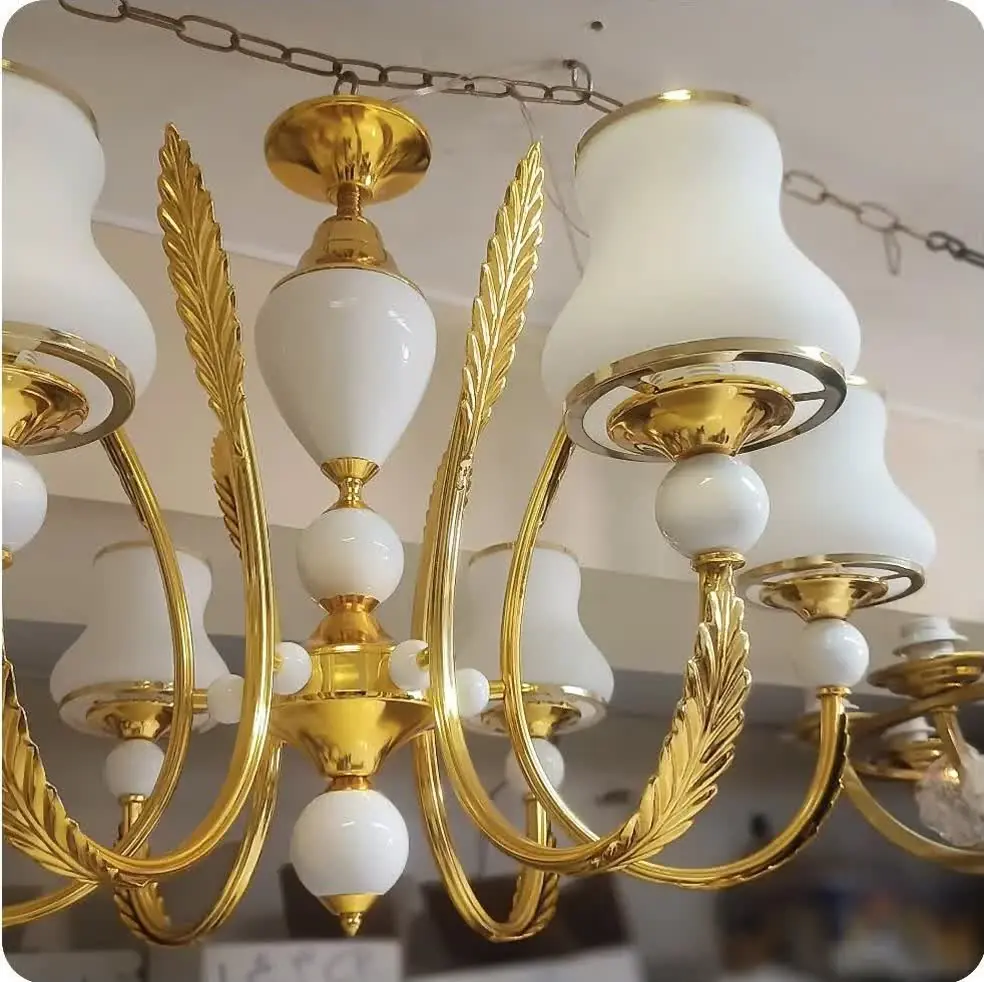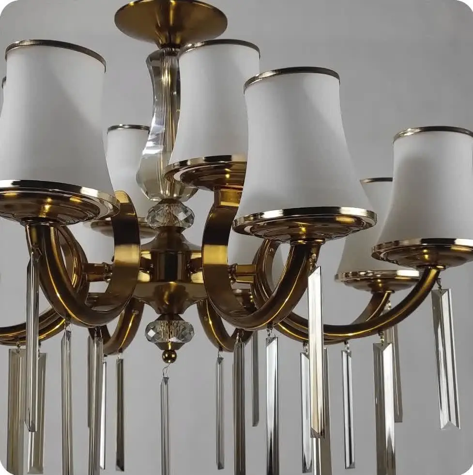- لوستر فلزی : این دسته از لوسترها با بدنههای فلزی (مس، برنج، آلومینیوم و فولاد ضدزنگ) ساخته میشوند و بهدلیل استحکام بالا و ظاهر مدرن، محبوبیت زیادی دارند. طرحهای هندسی و خطوط تمیز، ویژگی بارز لوستر فلزی مهدوی است.
