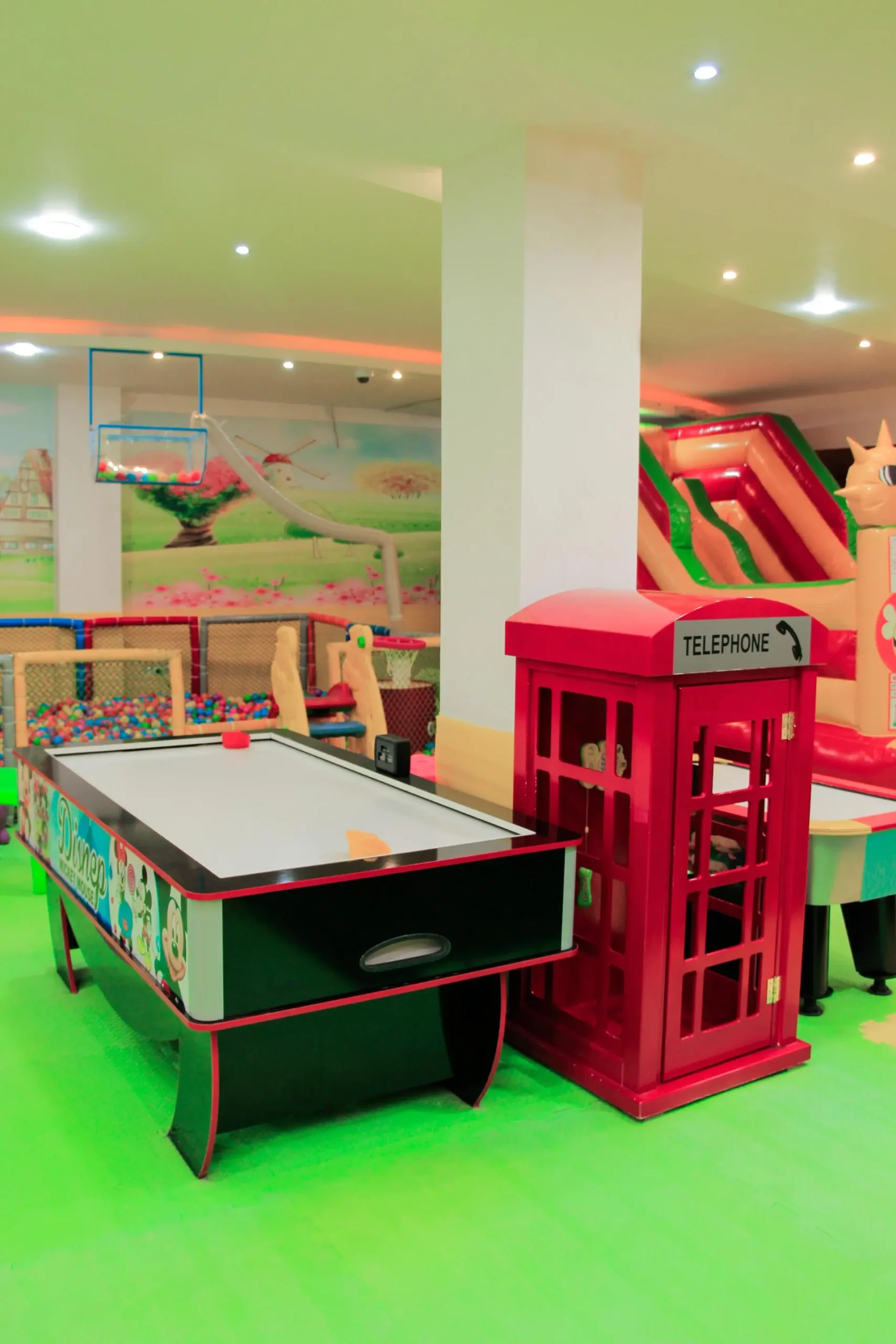 - بازی و سرگرمی : خانه بازیها فضایی فراهم میکنند که کودکان به صورت آزاد بتوانند بازی کنند. این شامل لوازم آموزشی، وسایل بادی، صندلیهای شن و اسباب بازیهای دیگر میشود.