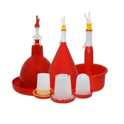 3. ظروف آب و غذا: ظروف مقاوم و بهداشتی برای تغذیه و آب‌دهی به طیور.
