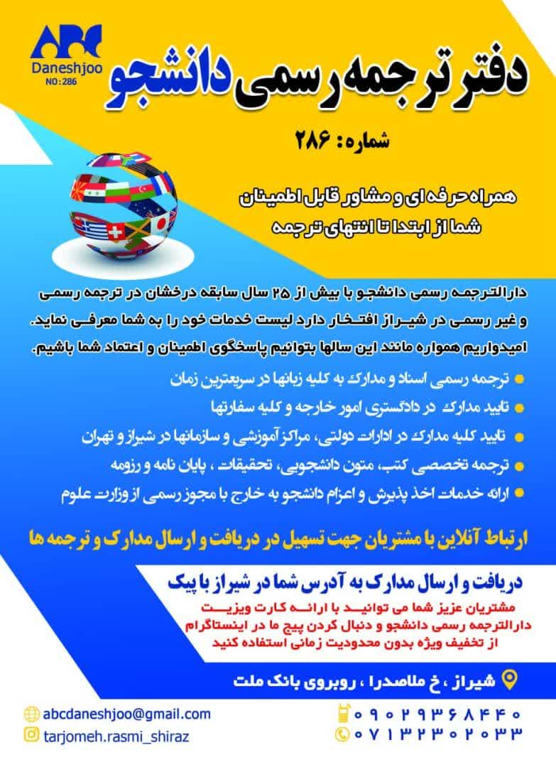 معرفی دارالترجمه رسمی دانشجو در شیراز
