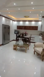 - آشپزخانه: کابینتهای بالایی و پایینی با قفسهبندی هوشمند، فضای ذخیرهسازی را بهینه کرده و دسترسی به وسایل را آسان میکنند.