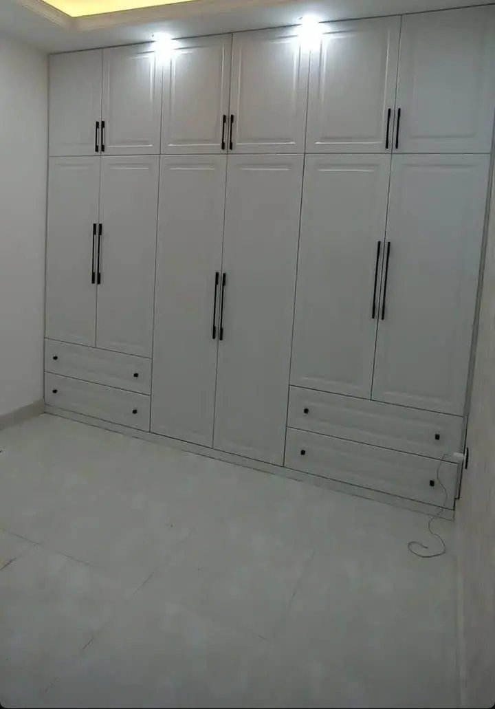 - اتاق خواب: کمدهای دیواری با قفسههای داخلی قابل تنظیم، فضای لباس، لوازم جانبی و حتی کتابها را سامان میدهند.