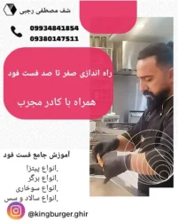 - آموزش تهیه انواع برگرها: از طرز تهیه گوشت برگر تا روشهای پخت بینظیر، همه جزئیات با دقت آموزش داده میشود.