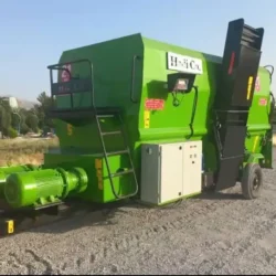 این نوع فیدر میکسر برای مزارع بزرگ و صنعتی مناسب است و معمولاً در محل ثابتی نصب میشود. این دستگاهها ظرفیت بالایی دارند و قادر به تهیه جیرههای متعادل برای تعداد زیادی دام هستند. - فیدر میکسر متحرک :