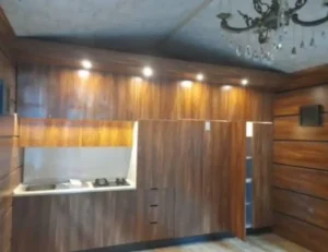 • کابینت‌های آشپزخانه: این کابینت‌ها باید علاوه بر زیبایی، مقاوم در برابر رطوبت، حرارت و سایش باشند. معمولاً از MDF، چوب طبیعی یا نئوپان با روکش‌های ضدآب استفاده می‌شود.