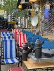- لوازم کمپینگ : شامل چادر کمپ انواع مختلف (دو نفره، چهار نفره، ضد باد و باران)، کرسی و میز کمپینگ، لوازم آشپزخانه سفری (مثل قوری گازی، دیگ، ظروف سبکوزن)، چراغهای کمپ، کولرهای نگهدارنده و سایر تجهیزات لازم برای اقامت در طبیعت.