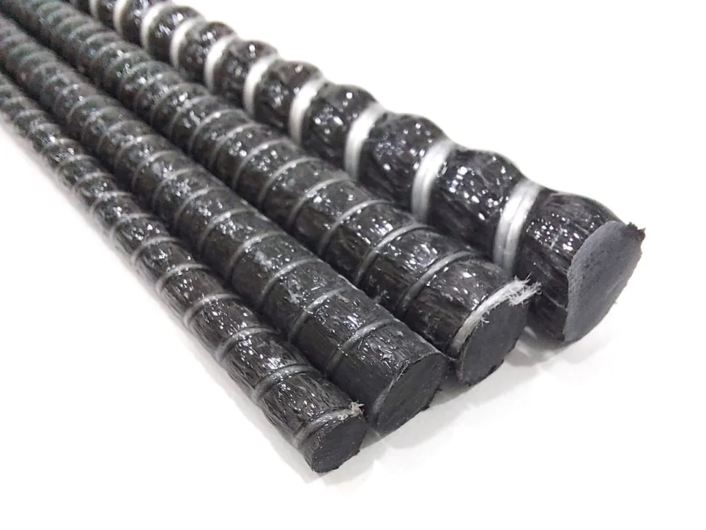 - میلگرد آجدار کامپوزیتی GFRP : ساختار آجدار آن باعث چسبندگی بسیار بالا با بتن میشود و طبق استانداردهای ACI 440 و ISIS Canada طراحی شده است. قطرهای رایج شامل ۸، ۱۰، ۱۲، ۱۴، ۱۶، ۲۰ و ۲۵ میلیمتر هستند که پاسخگوی طیف وسیعی از پروژههای ساختمانی و صنعتی میباشند.
