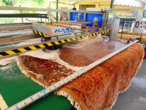 • فرش‌های ماشینی: با دستگاه‌های تمام اتوماتیک و کنترل دقیق دما و فشار آب، شستشویی ایمن و عمیق صورت می‌گیرد.
