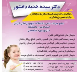 خدمات دندانپزشکی کودکان دکتر سیده هدیه دانشور :