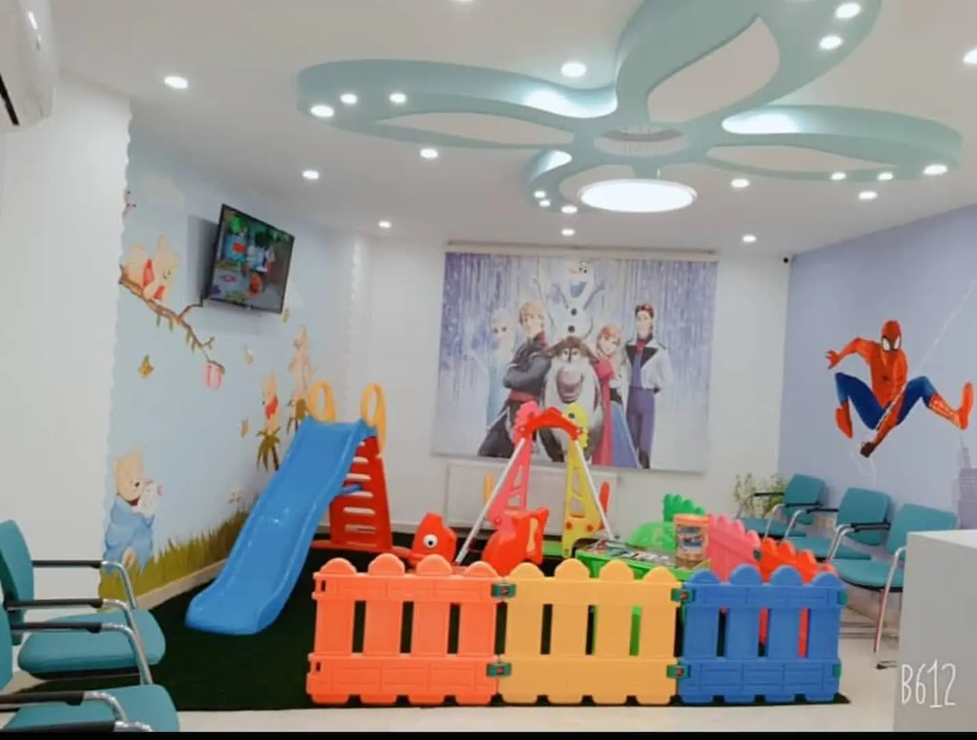 - فضای کودک محور : مطبی طراحیشده با رنگها، اسباببازی و تجهیزات مناسب سن کودک