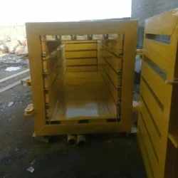 - دستگاههای تمام شاسی : برای واحدهای صنعتی، کارخانههای بزرگ بازیافت و مرکزهای توزیع منطقهای طراحی شدهاند. این نوع پرسها دارای سیستمهای هیدرولیک پیشرفته، کنترل هوشمند فشار، و سازه مقاوم در برابر ضربه و خوردگی هستند. ظرفیت فشردهسازی آنها از ۳۰ تن تا بیش از ۱۰۰ تن متغیر است و قابلیت پردازش کارتن، گونی، پلیاتیلن، پنبه، فیبر و حتی زبالههای شهری را دارند.