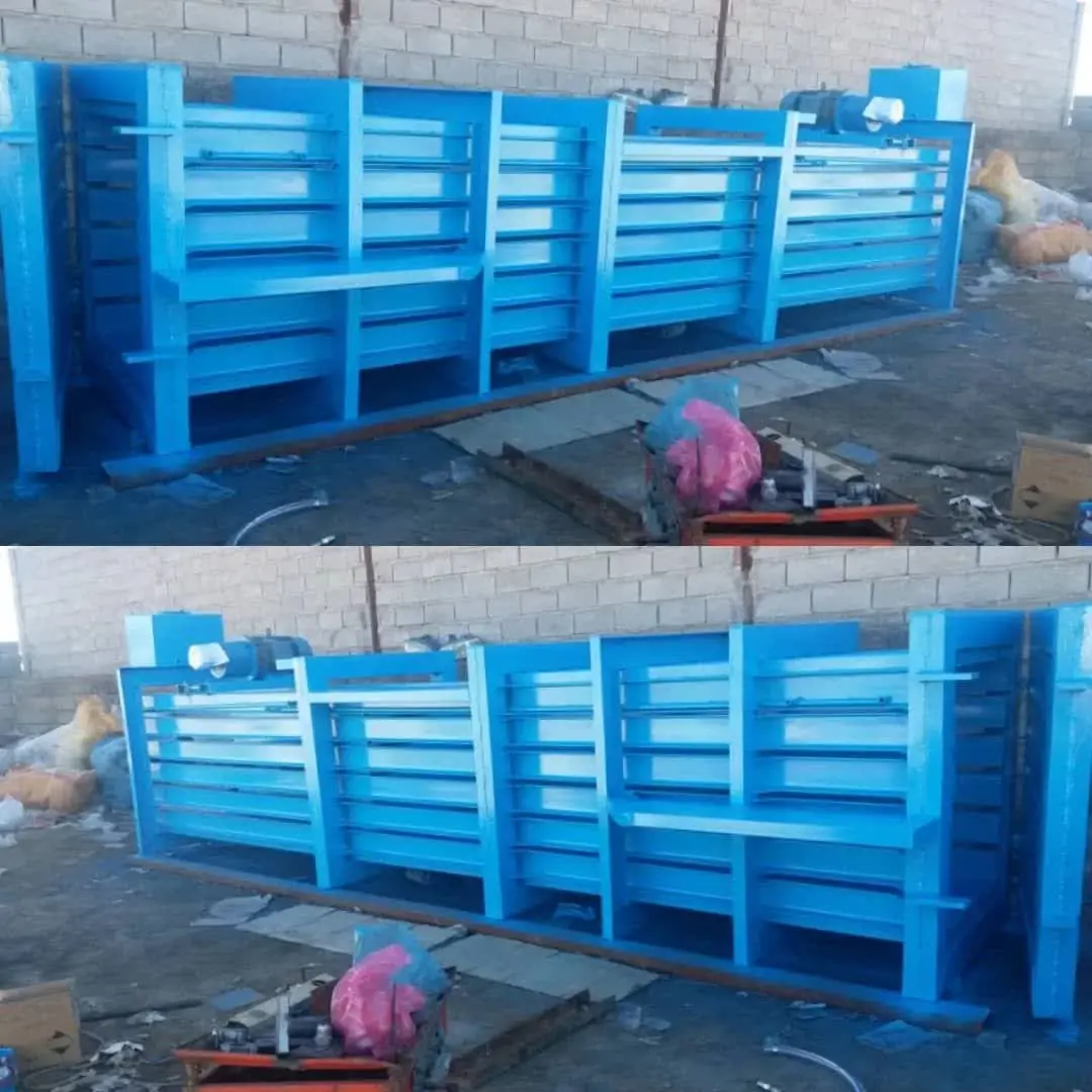 - دستگاههای تمام شاسی : برای واحدهای صنعتی، کارخانههای بزرگ بازیافت و مرکزهای توزیع منطقهای طراحی شدهاند. این نوع پرسها دارای سیستمهای هیدرولیک پیشرفته، کنترل هوشمند فشار، و سازه مقاوم در برابر ضربه و خوردگی هستند. ظرفیت فشردهسازی آنها از ۳۰ تن تا بیش از ۱۰۰ تن متغیر است و قابلیت پردازش کارتن، گونی، پلیاتیلن، پنبه، فیبر و حتی زبالههای شهری را دارند.