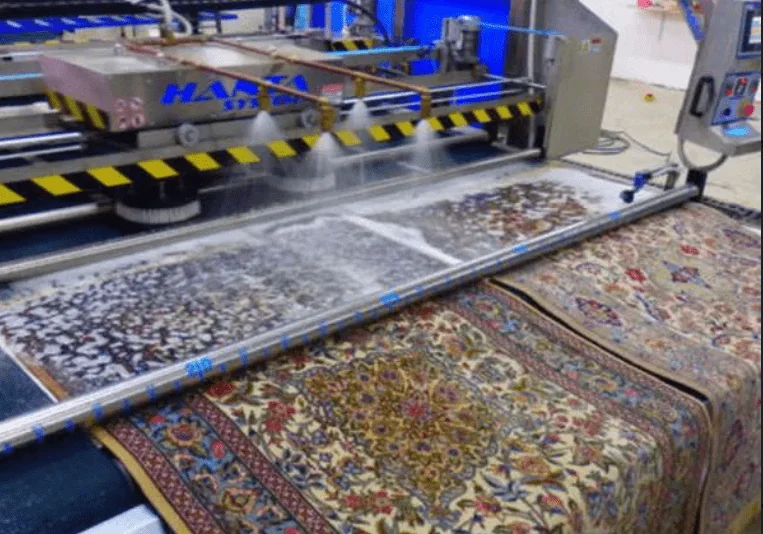 • رعایت اصول بهداشت و ایمنی : از مواد شوینده استاندارد و مجاز سازمان غذا و دارو استفاده می‌شود. همچنین، فضای کارخانه به‌صورت مداوم ضد عفونی می‌شود تا انتقال آلودگی بین فرش‌ها جلوگیری شود.
