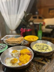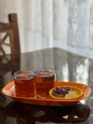 - چای و قهوههای خانگی و اصیل : چای دم کرده با گل محمدی محلی، قهوه ترکی و فرانسوی دستساز، و انواع چایهای دمنوشی بر پایه گیاهان دارویی ایرانی.