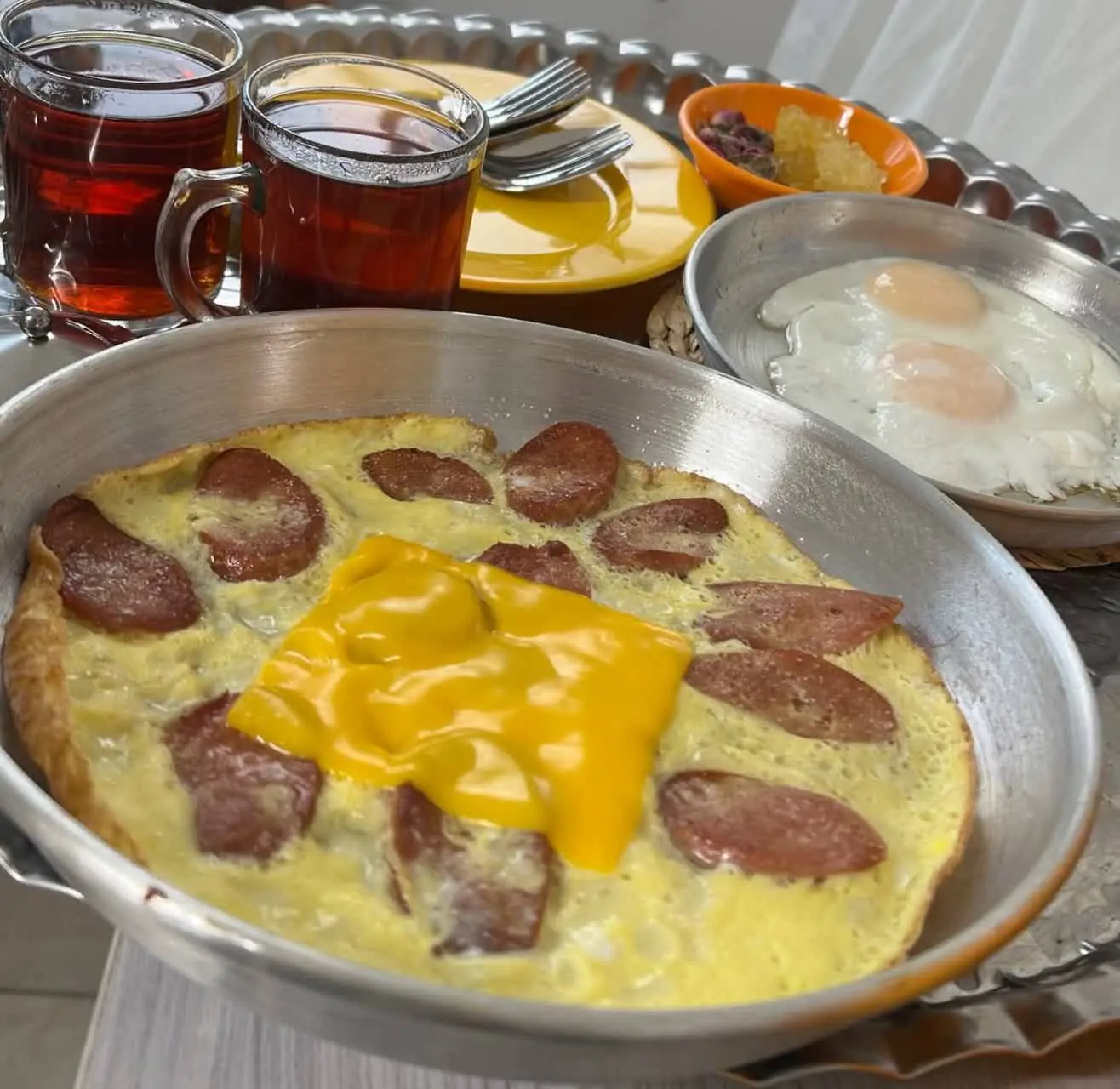 - چای و قهوههای خانگی و اصیل : چای دم کرده با گل محمدی محلی، قهوه ترکی و فرانسوی دستساز، و انواع چایهای دمنوشی بر پایه گیاهان دارویی ایرانی.
