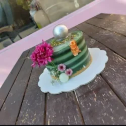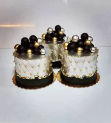 • لایه‌بندی چندگانه با فیلینگ‌های متنوع (خامه‌آلبالو، موز-کارامل، گاناش تلخ)