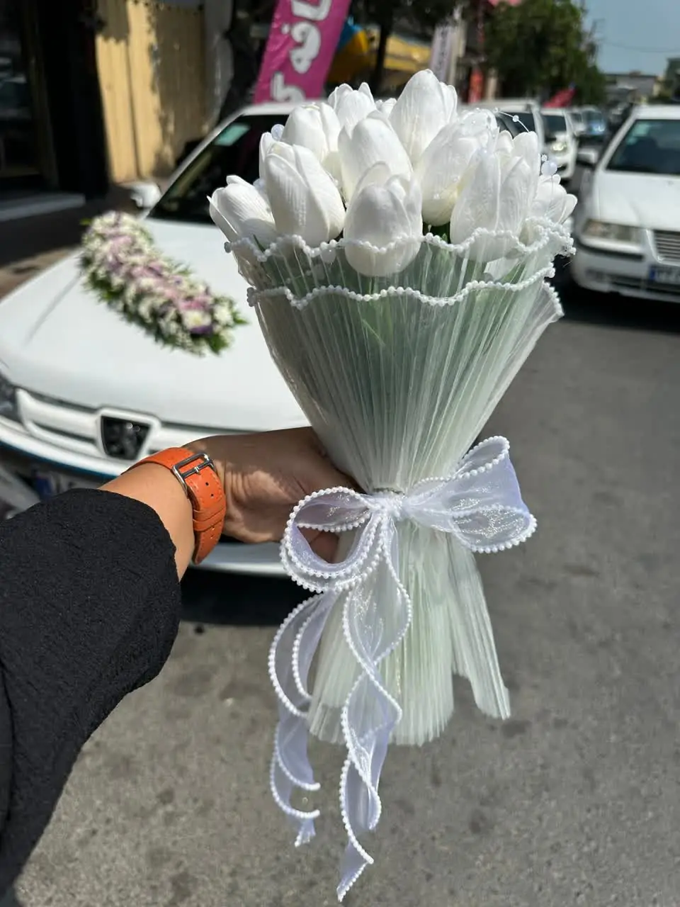 • تزئین گل ارایی ماشین عروس و دسته گل عروس