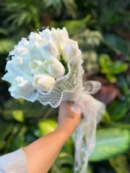 دسته گل عروس یکی از المان‌های کلیدی در عکس‌های مراسم و لحظات خاطره‌انگیز عروسی است. در کافه گل رز، دسته گل عروس با دقت و ظرافت بالا طراحی می‌شود. از گل‌های رز، لیلیوم، ارکیده و دیگر گل‌های فصل با کیفیت بالا استفاده می‌شود تا دسته گل شما نه تنها زیبا باشد، بلکه تا پایان مراسم تازه و شاداب بماند. همچنین امکان طراحی دسته گل متناسب با رنگ لباس عروس و سبک کلی مراسم فراهم است.