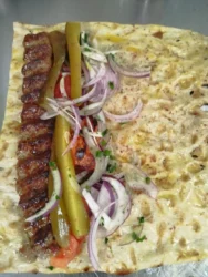 • ساندویچ کوبیده با نان سنگک یا لواش گرم، سبزی تازه و گوجه‌