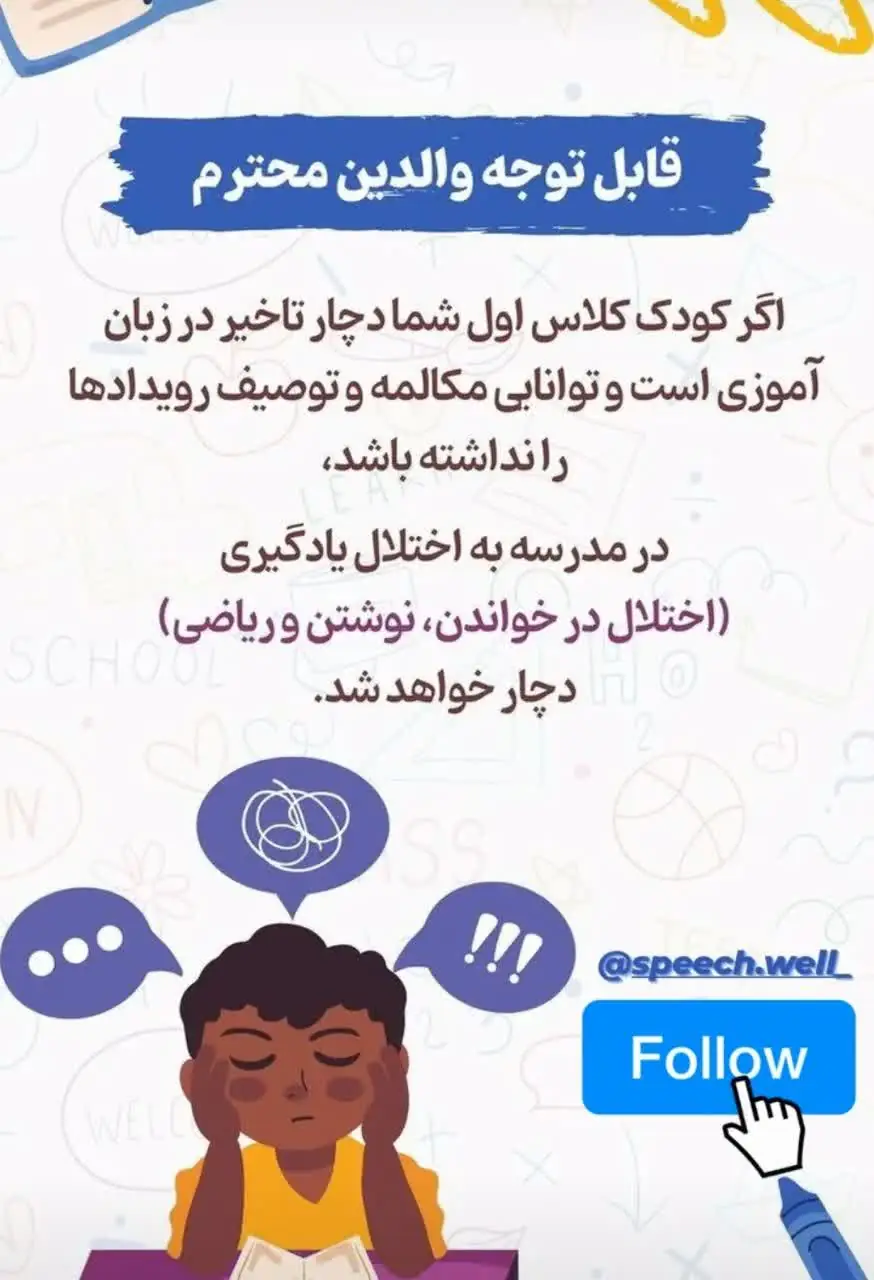 • اختلالات زبانی : تأخیر در گفتار، مشکل در درک یا بیان مفاهیم (در کودکان یا پس از سکته)